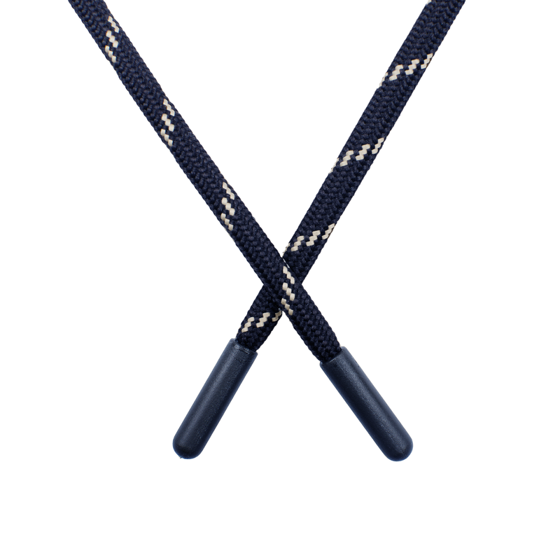 Шнур полиэстер круглый 0,5*135см с наконечником, цв:синий/белый